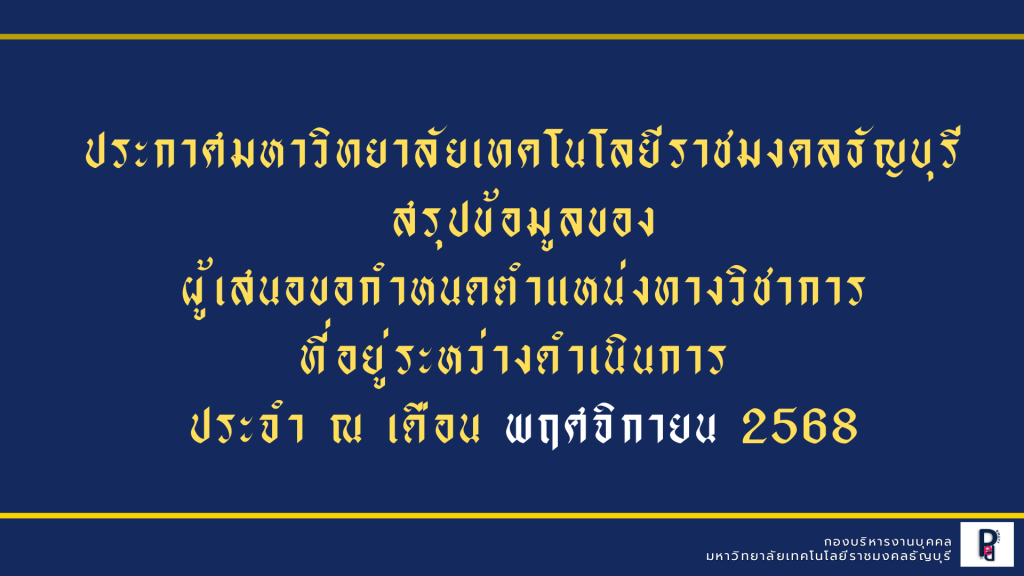 ประกาศมหาวิทยาลัยเทคโนโลยีราชมงคลธัญบุรี เรื่อง รับสมัครสอบแข่งขันเพื่อบรรจุเป็น พนักงานมหาวิทยาลัย มหาวิทยาลัยเทคโนโลยีราชมงคลธัญบุรี เปิดรับสมัครวันที่ 17 – 24 ธันวาคม 256702/12/2024ข้อมูลของผู้เสนอขอรับค่าตอบแทนพิเศษ สำหรับผู้ดำรงตำแหน่งทางวิชาการ ของพนักงานมหาวิทยาลัย (ข้อมูล ณ เดือน ธันวาคม 2567)11/12/2024 Published by hangbody on 11/12/2024 Categories การดำรงตำแหน่งที่สูงขึ้น Tags ตำแหน่งทางวิชาการมทร.ธัญบุรีมหาวิทยาลัยเทคโนโลยีราชมงคลธัญบุรี สรุปข้อมูลของผู้เสนอขอกำหนดตำแหน่งทางวิชาการ ที่อยู่ระหว่างดำเนินการประจำเดือน ธันวาคม 2567 Up 12 2567 (116.1 KiB, 498 downloads) Post Views: 814 Share21 hangbody Related posts03/11/2025ข้อมูลของผู้เสนอขอรับค่าตอบแทนพิเศษ สำหรับผู้ดำรงตำแหน่งทางวิชาการ ของพนักงานมหาวิทยาลัย (ข้อมูล ณ เดือน พฤศจิกายน 2568)Read more03/11/2025รายงานความก้าวหน้าการเสนอขอกำหนดตำแหน่งทางวิชาการ (ข้อมูล ณ เดือน พฤศจิกายน 2568)Read more30/10/2025กองบริหารงานบุคคล มหาวิทยาลัยเทคโนโลยีราชมงคลธัญบุรี ขอแสดงความยินดีและชื่นชมกับบุคลากรสายวิชาการในโอกาสได้รับการแต่งตั้งให้ดำรงตำแหน่งทางวิชาการRead more Comments are closed.