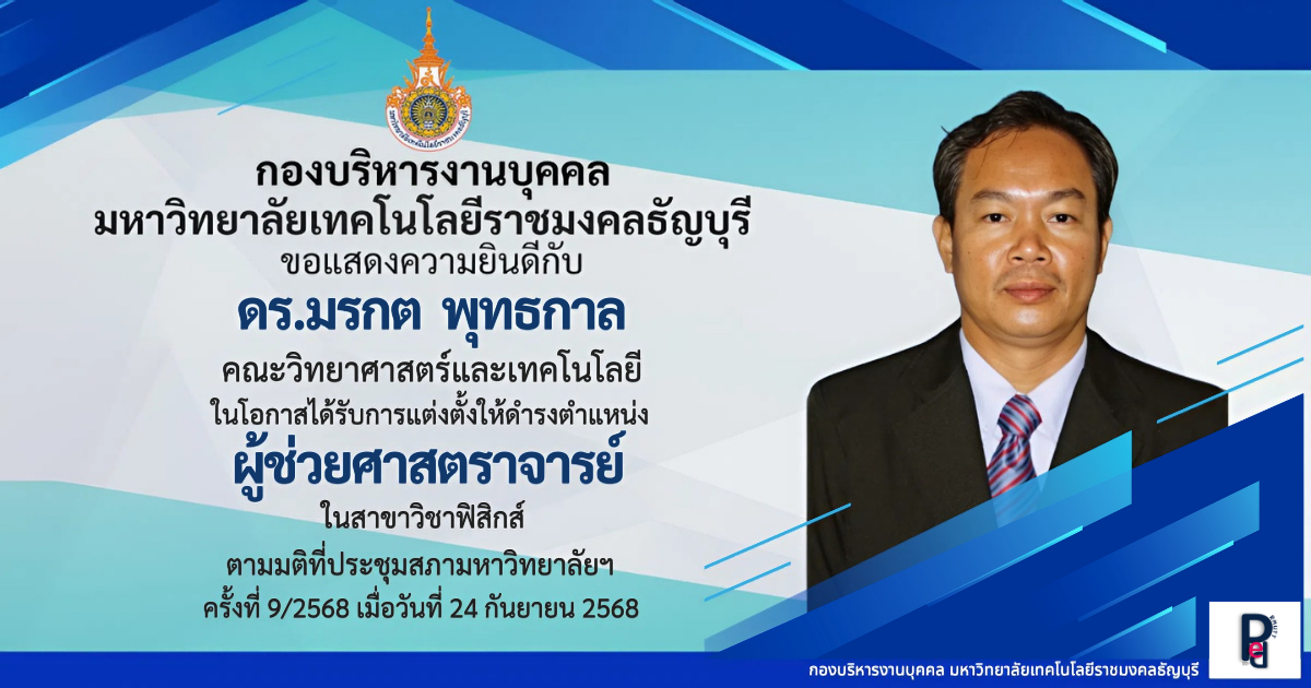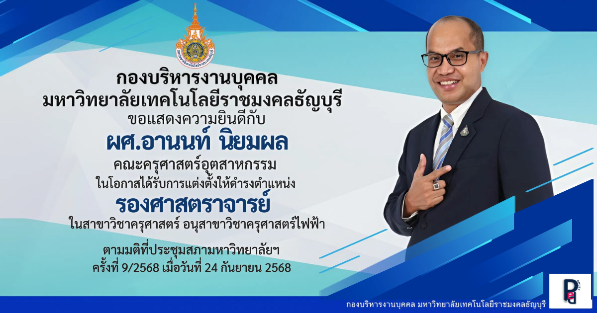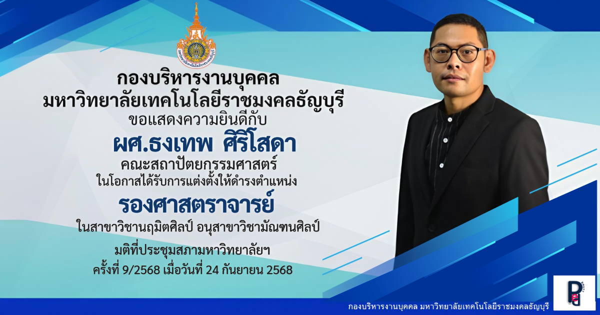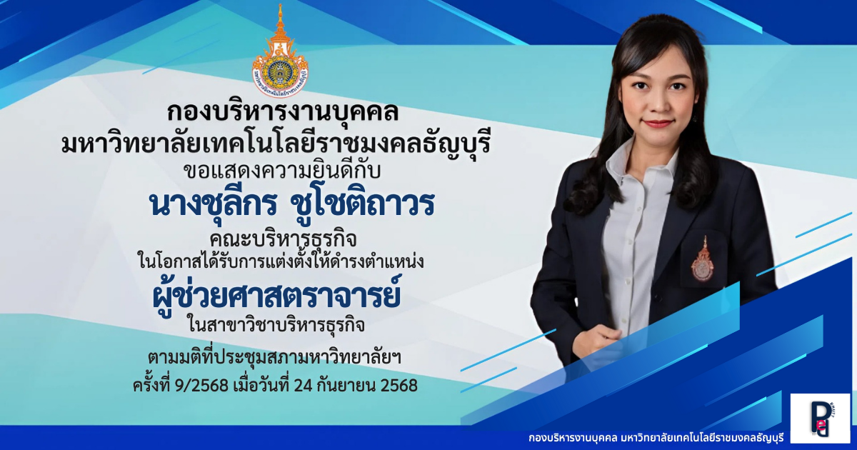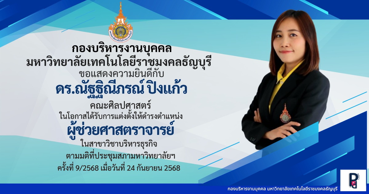 26/09/2025กองบริหารงานบุคคล มหาวิทยาลัยเทคโนโลยีราชมงคลธัญบุรี