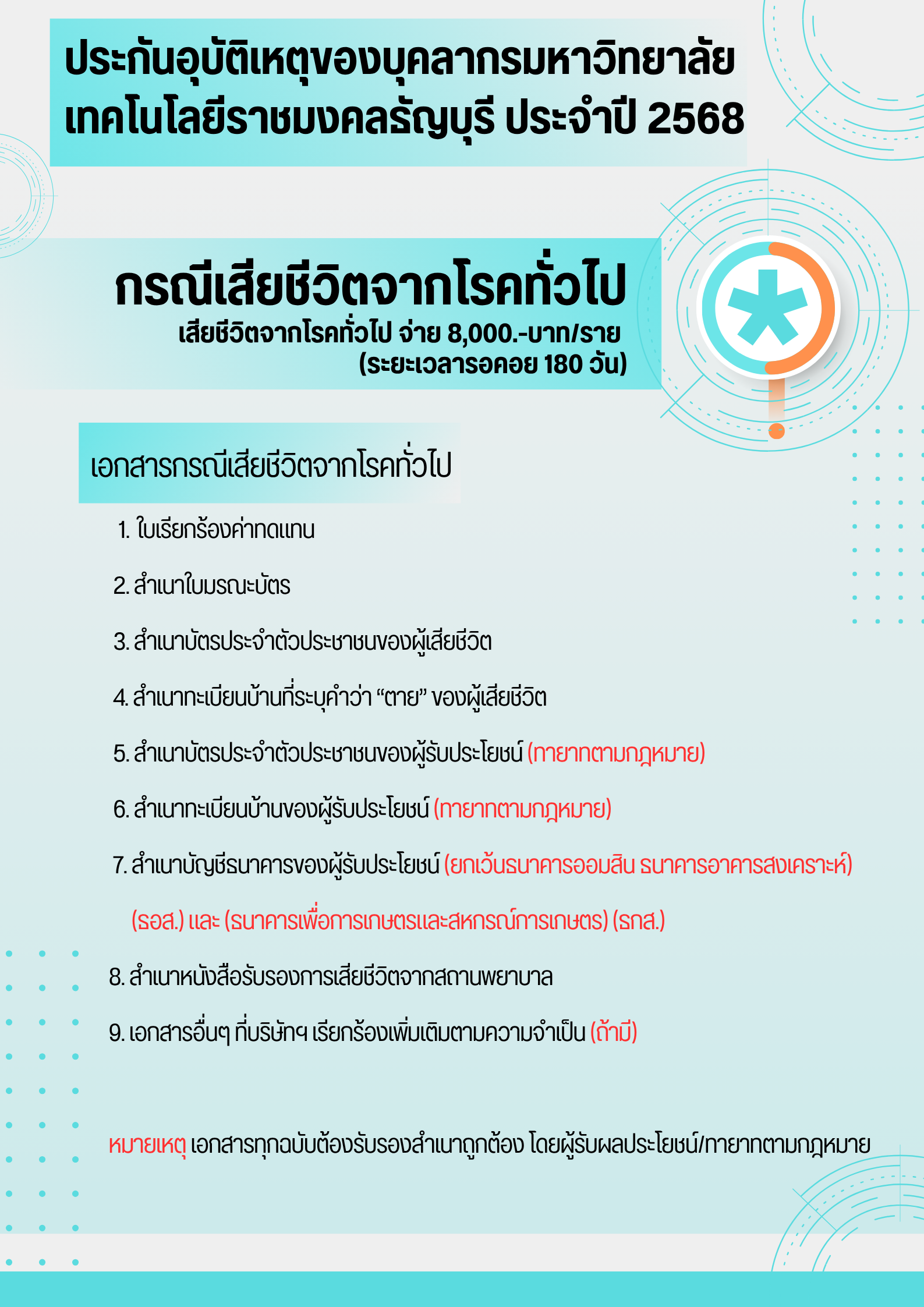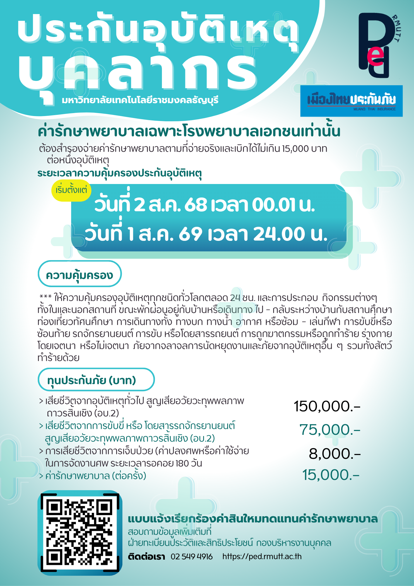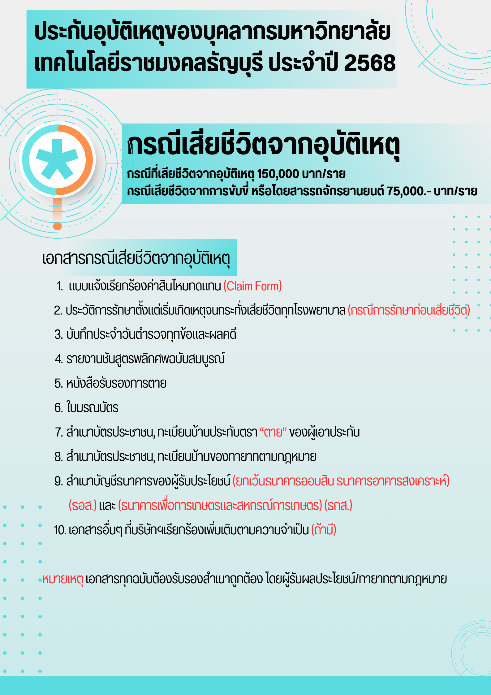 ประกันอุบัติเหตุของบุคลากรมหาวิทยาลัยเทคโนโลยีราชมงคลธัญบุรี ประจำปี 2568